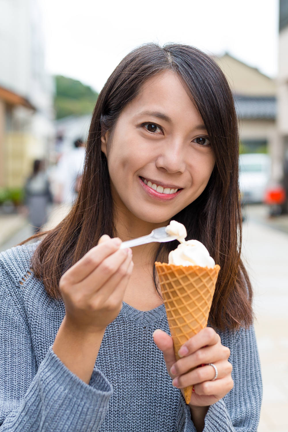 Woman eating ice cream in a cone